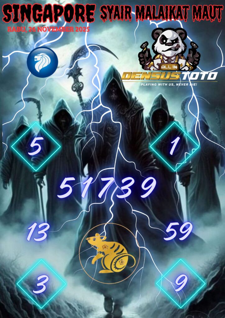 Prediksi DENSUSTOTO menyediakan Syair Togel Singapore resmi yang dapat anda saksikan dalam situs judi togel online ini. Setiap pemain judi togel online yang tidak memandang dan mengenal syair togel singapore pastilah kurang mujur buat mendapati angka keluaran togel terjitu. Lantaran itu sekarang situs judi togel online DENSUS TOTO sekarang akan memberikan anda bocoran bagaimana caranya mendapati nomor keluaran prediksi singapore dari syair togel sgp terjitu. Sekarang anda cuma perlu dan mengenal code syair singapore ini merupakan prediksi singapore yang dituang terdapat sifat code syair. Maka serius tidak bertanya-tanya jikalau sejumlah penggemar togel begitu menyintai prediksi syair togel ini. Buat prediksi syair singapore dapat dipakai buat bahan ketidaksamaan mencari angka jitu yang bisa keluar pada hari ini. Karenanya berhati-hatilah selalu pada setiap terdapat dipicu di situ dapat anda angka bermain 2D, 3D dan 4D