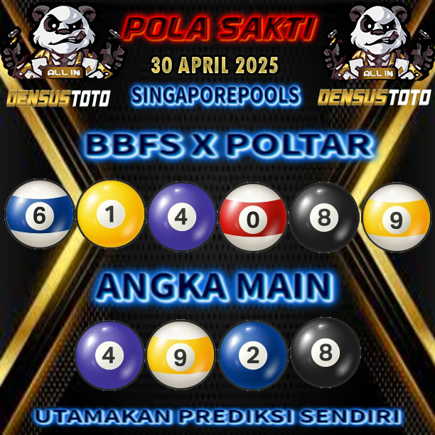 Prediksi DENSUSTOTO menyediakan Syair Togel Singapore resmi yang dapat anda saksikan dalam situs judi togel online ini. Setiap pemain judi togel online yang tidak memandang dan mengenal syair togel singapore pastilah kurang mujur buat mendapati angka keluaran togel terjitu. Lantaran itu sekarang situs judi togel online DENSUS TOTO sekarang akan memberikan anda bocoran bagaimana caranya mendapati nomor keluaran prediksi singapore dari syair togel sgp terjitu. Sekarang anda cuma perlu dan mengenal code syair singapore ini merupakan prediksi singapore yang dituang terdapat sifat code syair. Maka serius tidak bertanya-tanya jikalau sejumlah penggemar togel begitu menyintai prediksi syair togel ini. Buat prediksi syair singapore dapat dipakai buat bahan ketidaksamaan mencari angka jitu yang bisa keluar pada hari ini. Karenanya berhati-hatilah selalu pada setiap terdapat dipicu di situ dapat anda angka bermain 2D, 3D dan 4D.